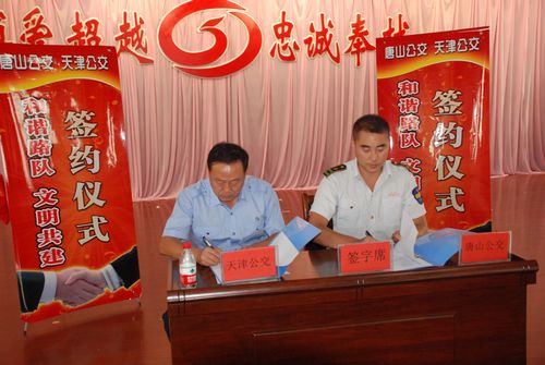 9月16日,天津公交工會主席孔昭杰一行5人應邀來唐山公交傳經送寶,共敘友誼,共謀發(fā)展,并與唐山公交舉行了“和諧路隊、文明共建”簽約儀式。公交總公司全體班子成員出席簽約儀式,各分公司領導班子、各部室負責人以及路隊管理人員、一線職工代表共計240余人參加了此次會議。